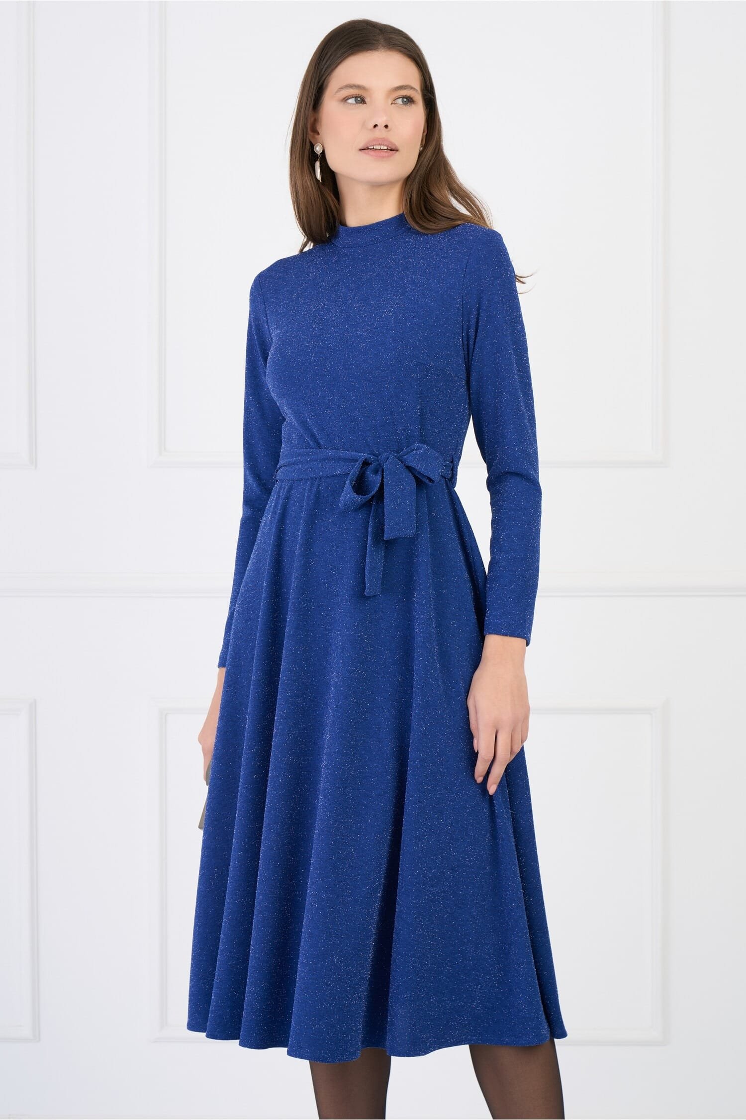 Rochie eleganta din lurex cu cordon detasabil in talie. Are guler la baza gatului, maneci lungi si croi clos.  Rochie eleganta Guler la baza gatului Maneci lungi Croi clos Cordon in talie Fara captuseala Se inchide cu fermoar la spate Material: Lurex Compozitie: 95% Poliester, 5% Spandex *Va rugam verificati eticheta produsului inainte de curatare! *Va rugam sa retineti ca o usoara discrepanta de culoare ar trebui sa fie acceptabila datorita luminii si luminozitatii ecranului.   *Va rugam verificati ghidul de marimi, in cm, pentru a alege corect marimea. ÂÂ